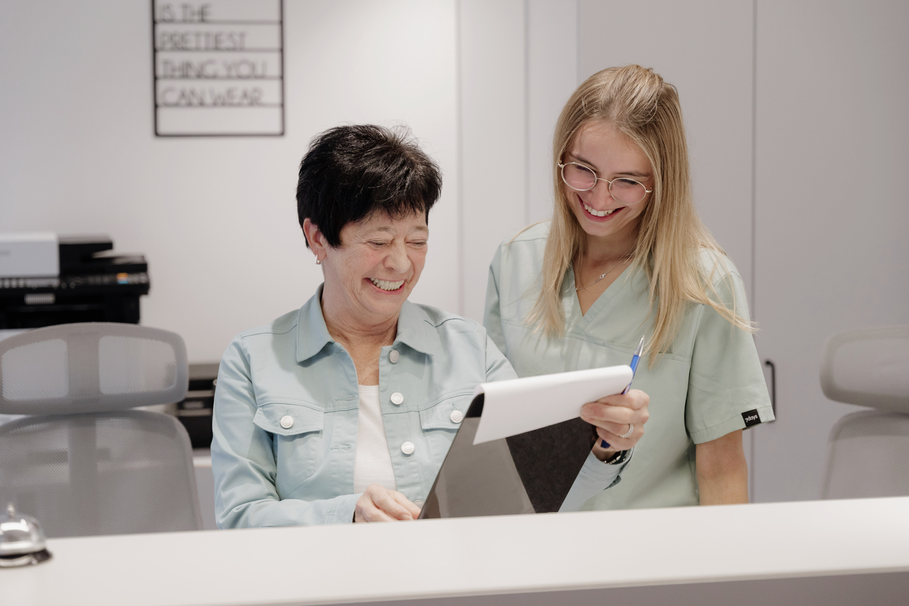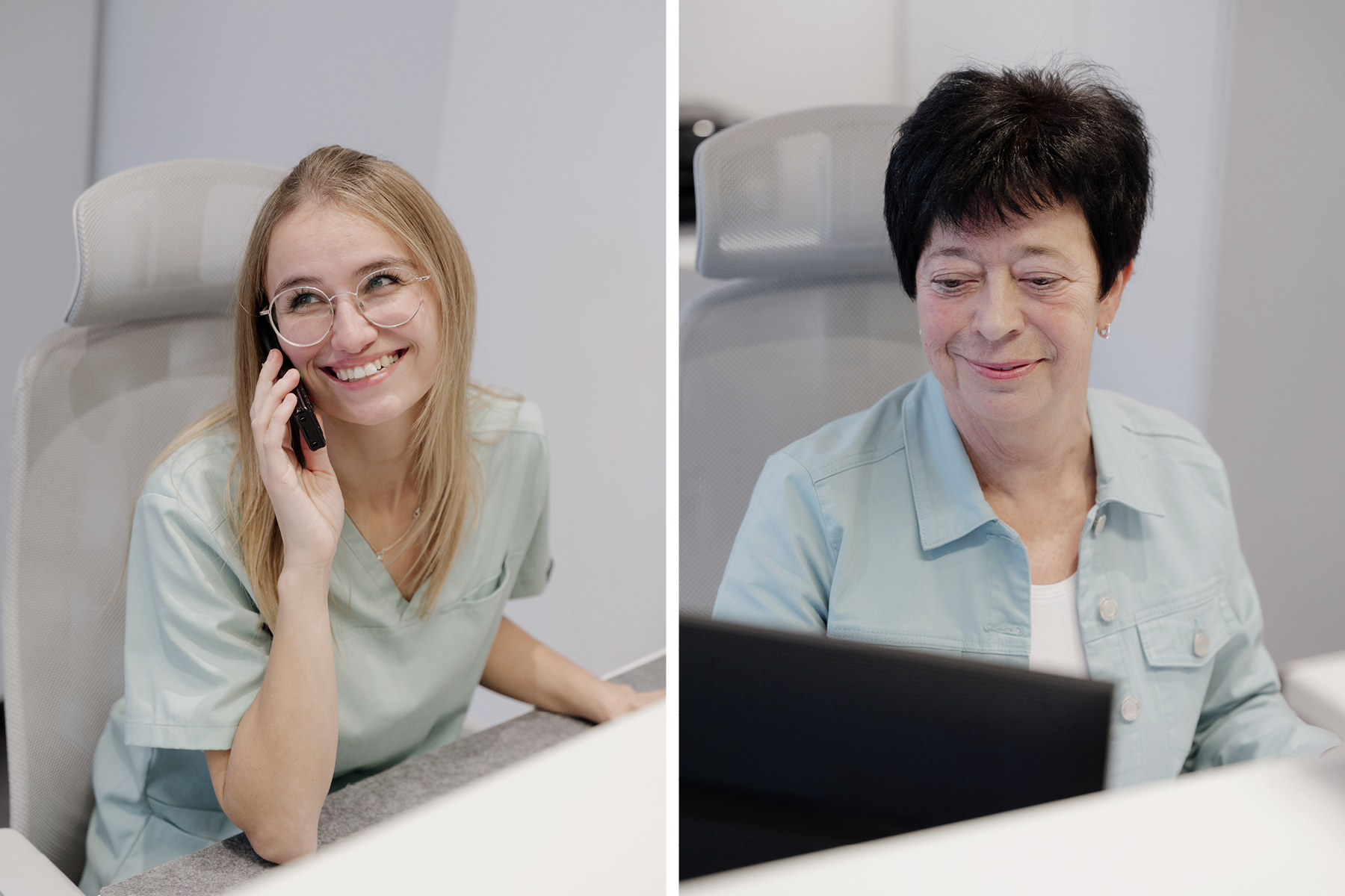 Bei unserer Rezeption sind Sie in den besten Händen: Unsere Kolleginnen kümmern sich freundlich und kompetent um die Terminvergabe sowie um die weitere organisatorische Abwicklung Ihres Praxisbesuchs. Mit offener, herzlicher und aufgeschlossener Art stehen sie Ihnen jederzeit gerne für Fragen und Anliegen zur Verfügung.